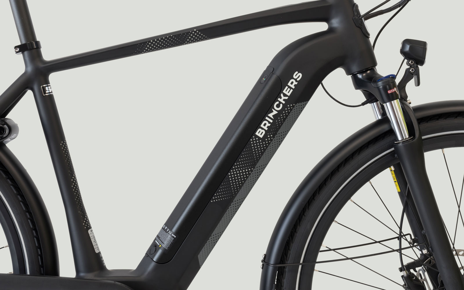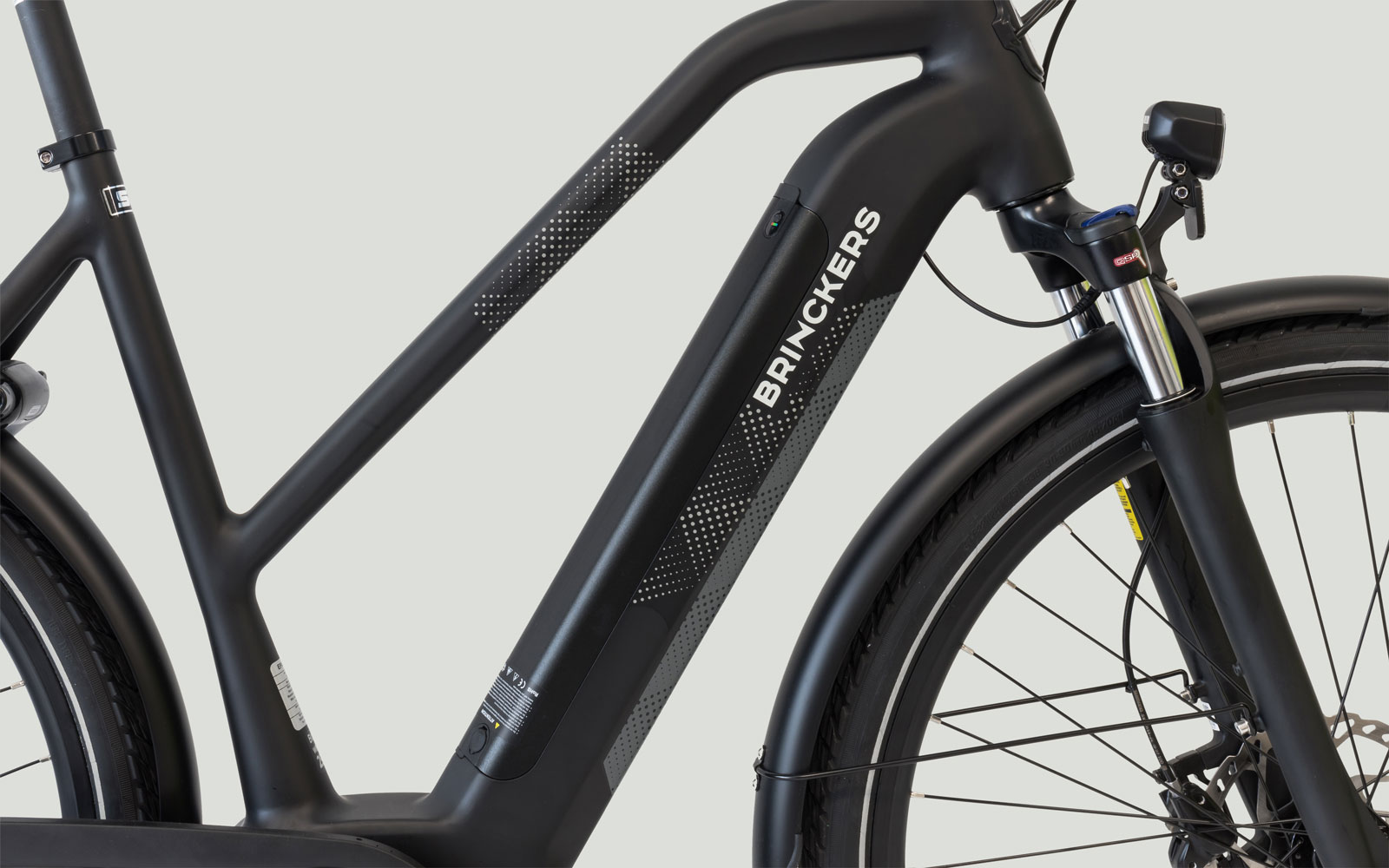 By applying a distinct graphic pattern to all parts of the frame, a stronger optical unity has been created within the frame. Because the battery is no longer under the carrier, the optical center of gravity has shifted forward, which gives the bike a smooth character in both the men's and women's versions.